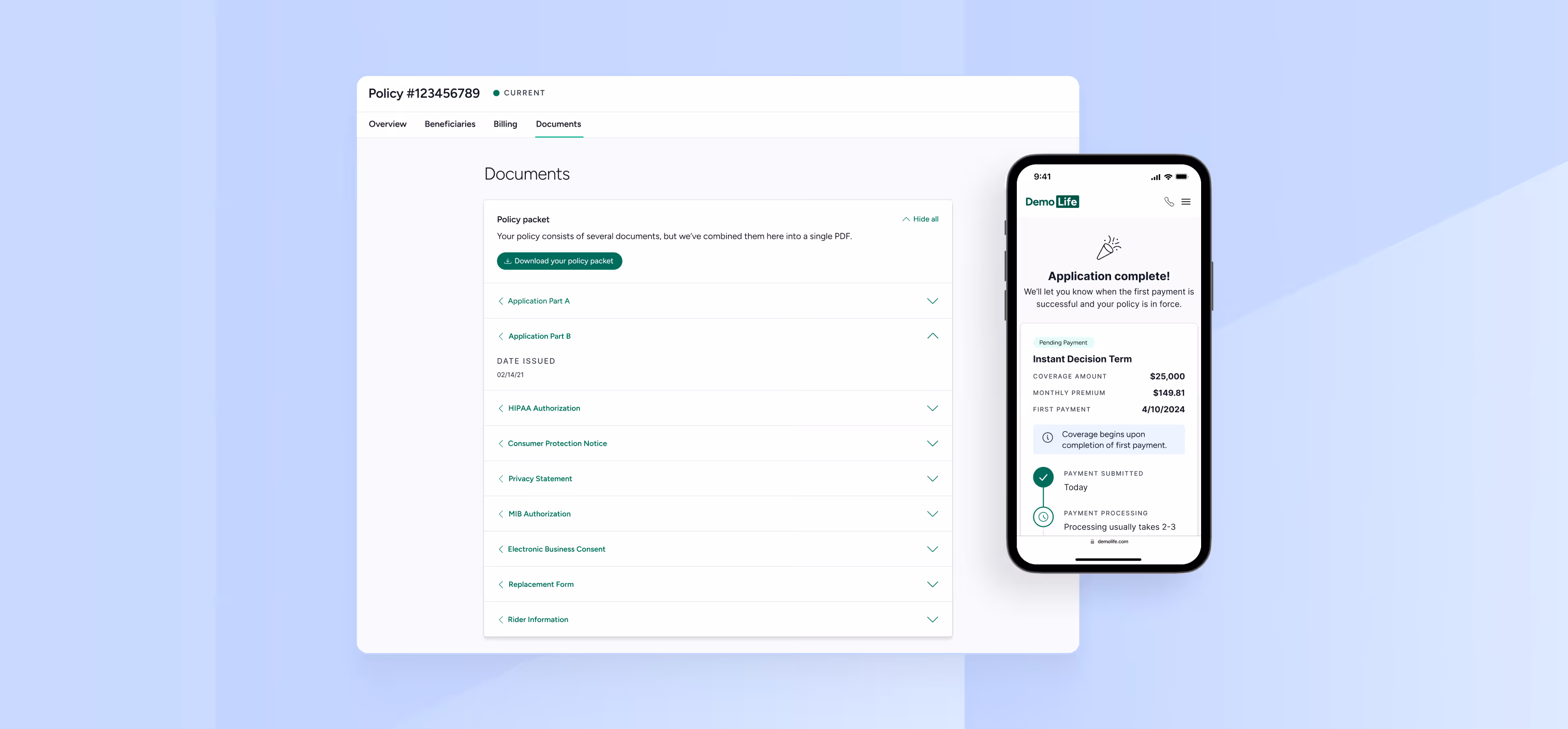 We’re the leading new business and administration technology partner for life insurance carriers looking to modernize efficiently and quickly. We support digital quote, illustration, and application journeys for customers and agents, offer a sophisticated underwriting engine and workbench interface, provide seamless payment, billing, and policy delivery services, and make administration a breeze with portal experiences for customers and support staff alike, as well as full TPA services trusted by top carriers. Our platform supports term life, final expense, IUL, and more — and can be implemented as a full end-to-end or modular solution. This gives carriers the flexibility to modernize in the way that makes sense for their unique needs.