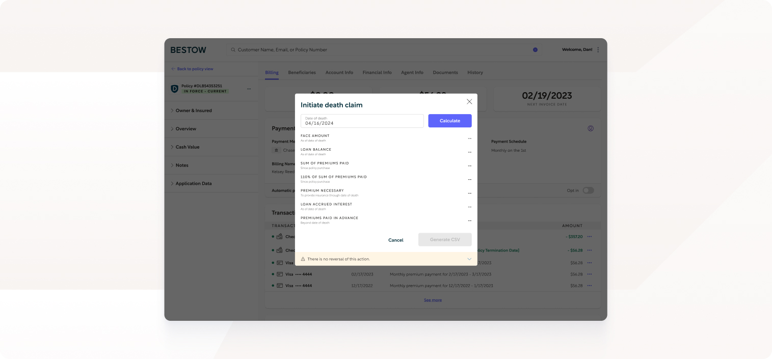Sammons® Financial Group purchased Bestow Life Insurance Company in 2024. It was renamed Lantern Insurance Company. Your policy remains in force, and you can access your account here.