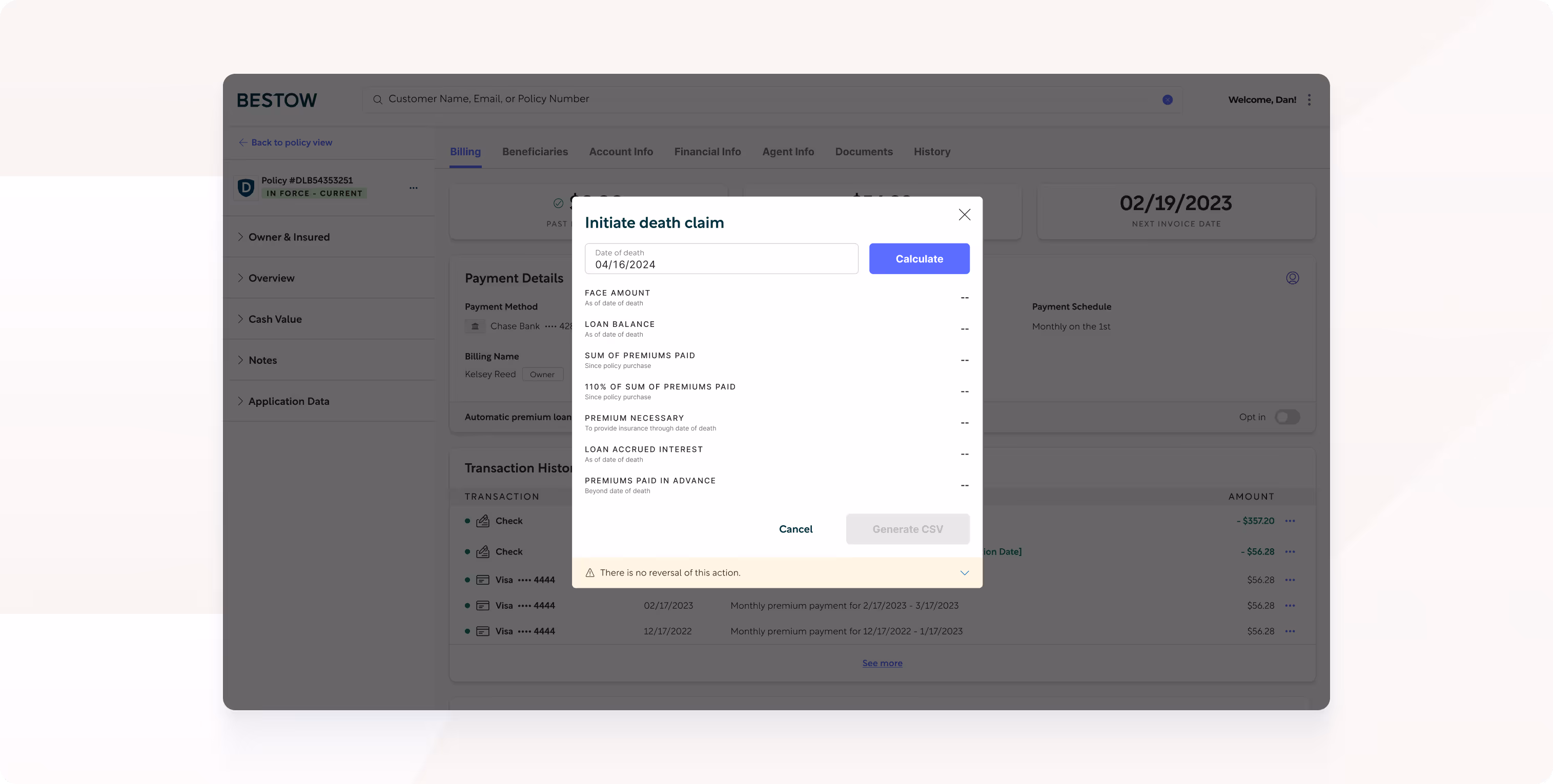 Sammons® Financial Group purchased Bestow Life Insurance Company in 2024. It was renamed Lantern Insurance Company. Your policy remains in force, and you can access your account here.
