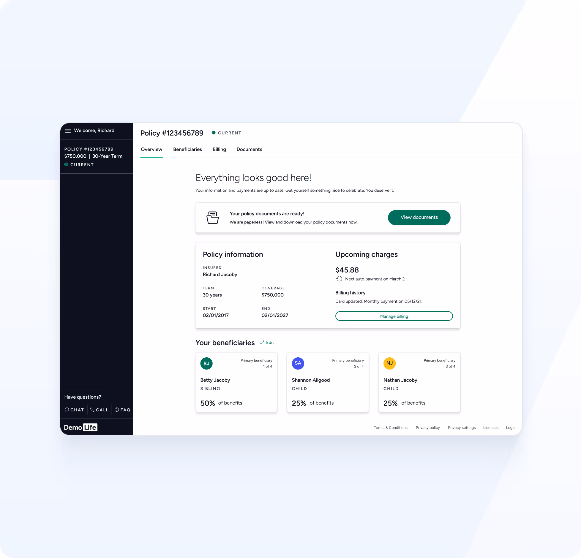 We’re the leading new business and administration technology partner for life insurance carriers looking to modernize efficiently and quickly. We support digital quote, illustration, and application journeys for customers and agents, offer a sophisticated underwriting engine and workbench interface, provide seamless payment, billing, and policy delivery services, and make administration a breeze with portal experiences for customers and support staff alike, as well as full TPA services trusted by top carriers. Our platform supports term life, final expense, IUL, and more — and can be implemented as a full end-to-end or modular solution. This gives carriers the flexibility to modernize in the way that makes sense for their unique needs.