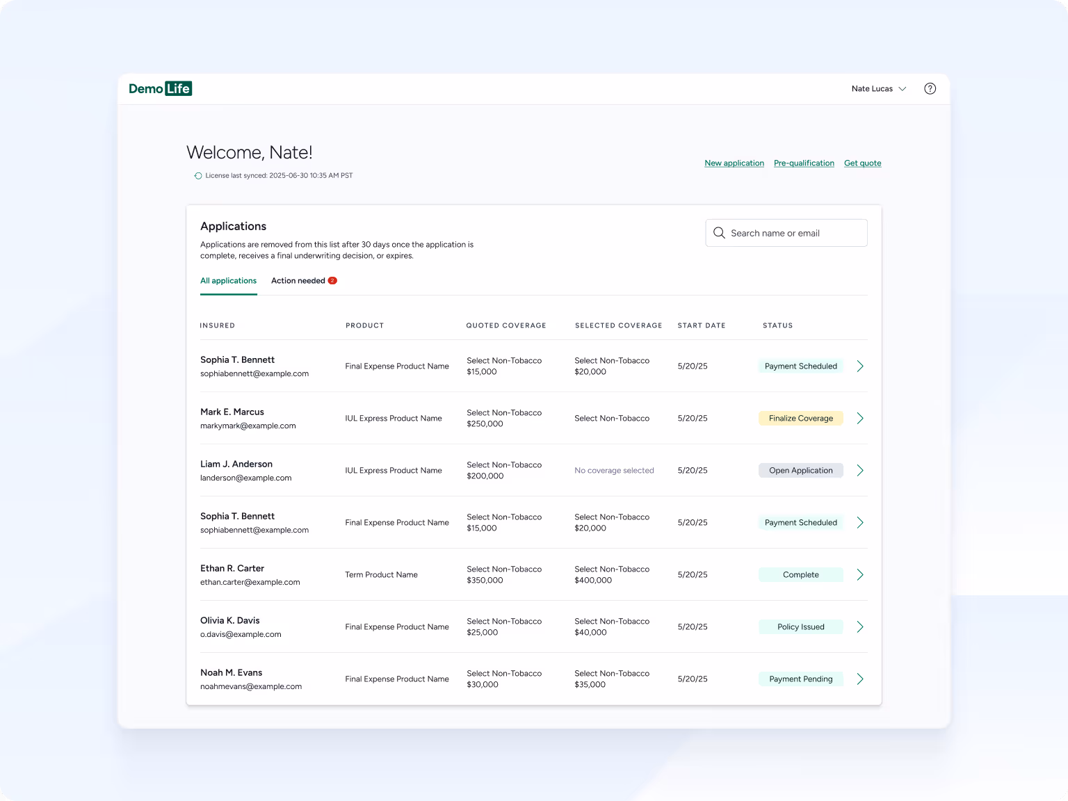 Easily integrate into various captive or independent agent workflows, with support for multiple product types and in-person or remote sales.