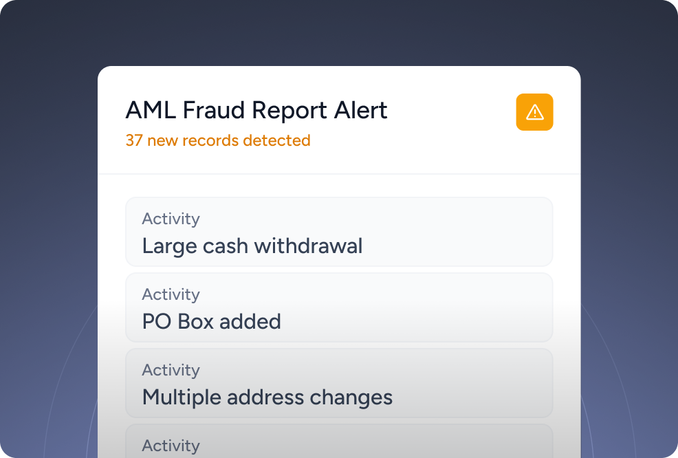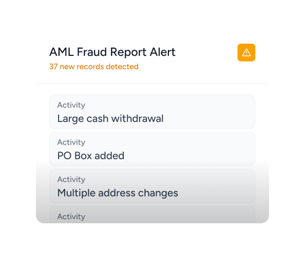 Using powerful modeling to analyze data sets, this tool automatically crawls interaction logs on a daily basis, instantly parsing thousands of data points against an ever-growing list of AML (anti-money laundering) and fraud indicators. Some examples of common potential fraud indicators include: