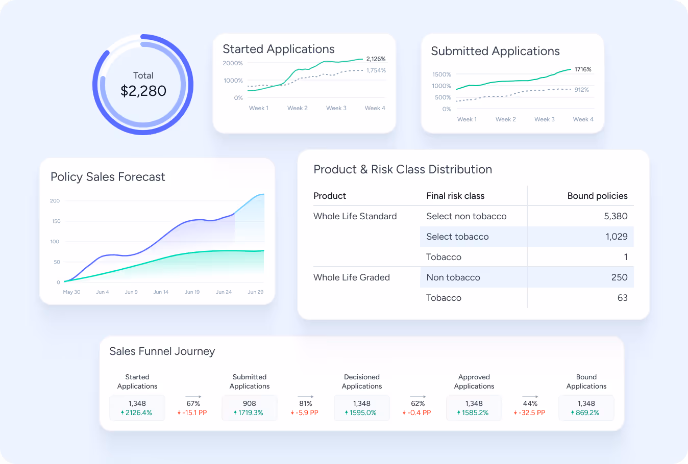 Harness the power of comprehensive data on customer activity, quotes and applications, policies, finances, and more.