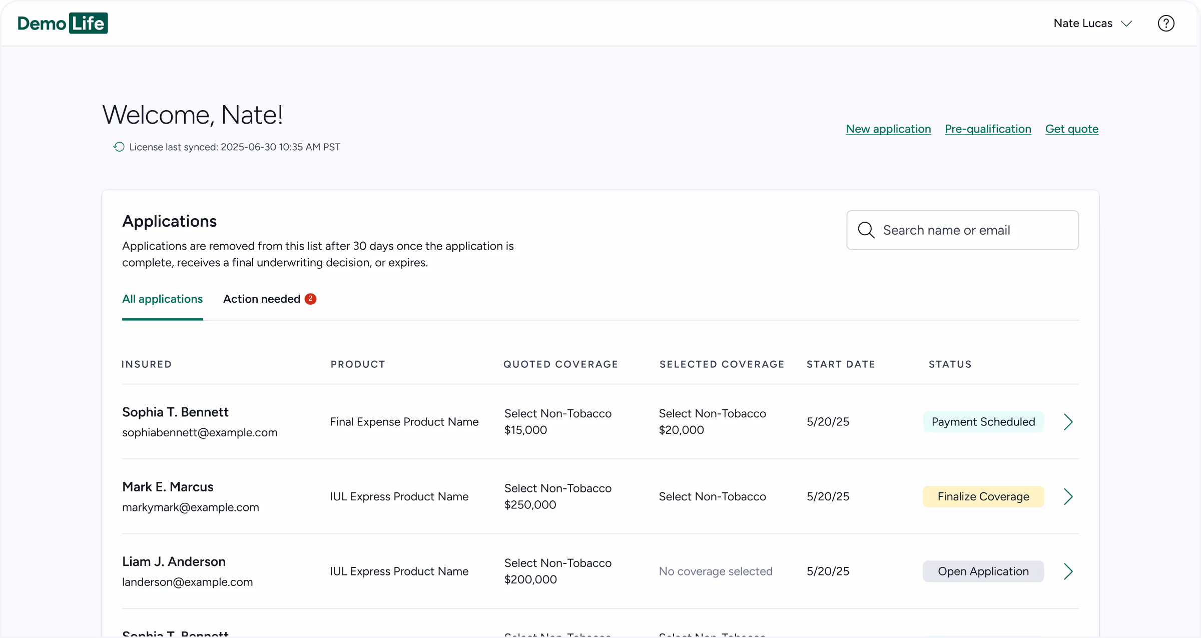 The Bestow agent dashboard makes tracking and advancing in-progress business simple, with seamless quote and application tools, and built-in notifications.